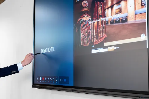 4K大型タッチパネルディスプレイに高品質なカメラ、マイク、スピーカー、 Windows OSなど会議に必要な機能をすべて搭載。